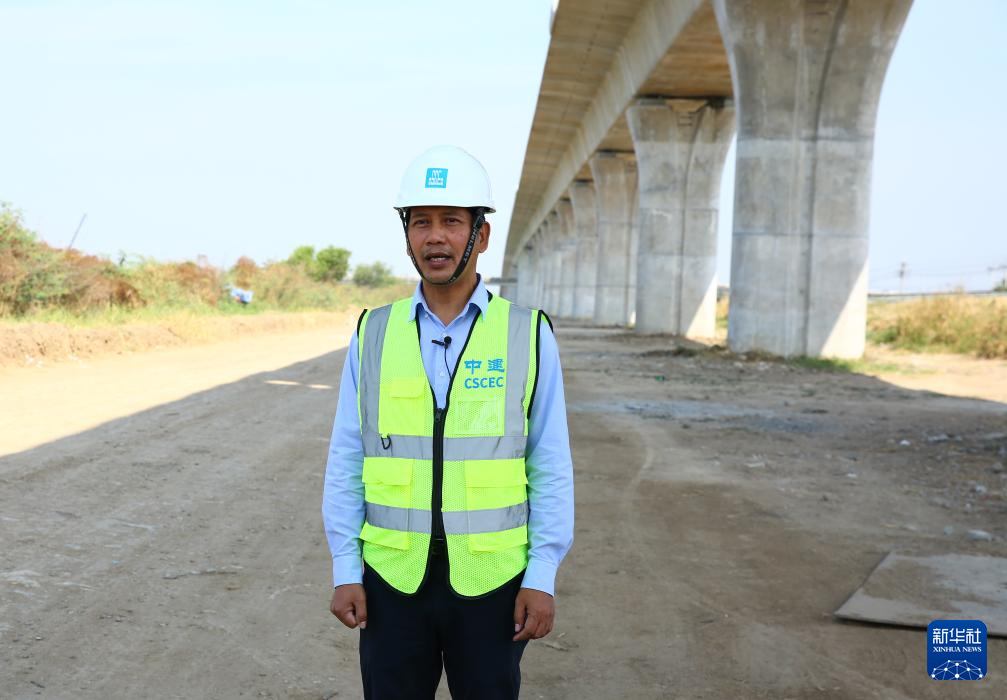 1月30日,在位于泰國中部大城府的中泰高鐵項目4-3標(biāo)段,泰籍員工杰占·賽深接受新華社記者采訪。新華社記者 孫瑋彤 攝