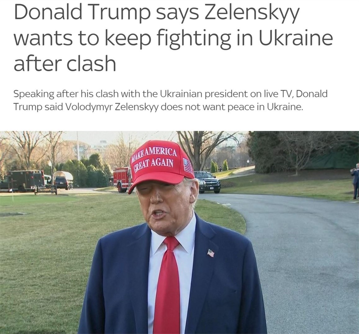 美國總統(tǒng)特朗普與到訪的烏克蘭總統(tǒng)澤連斯基2月28日在白宮當(dāng)著媒體的面“大吵一架”,引發(fā)國際輿論大嘩。