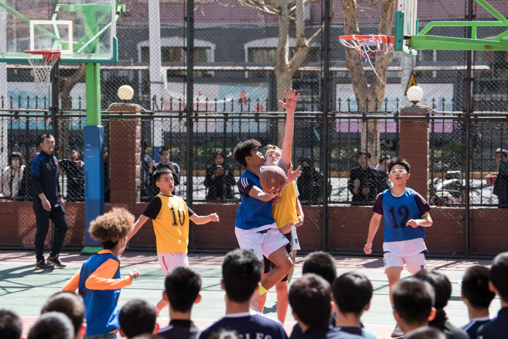 3月19日,中美青少年在石家莊外國語學(xué)校打籃球友誼賽。劉尊拴 攝