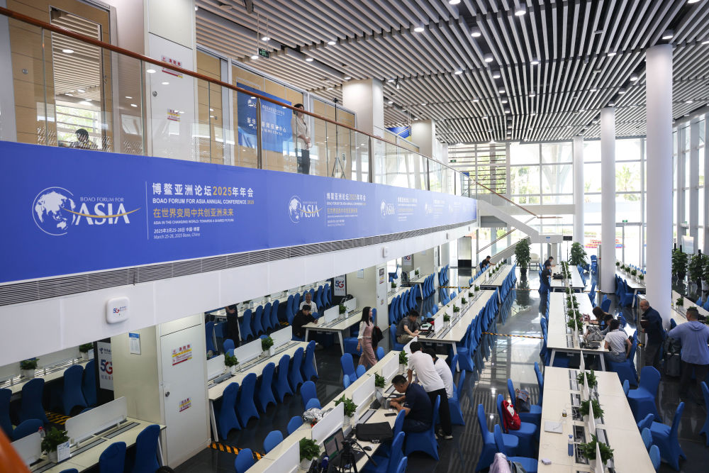 3月24日,記者在博鰲亞洲論壇新聞中心工作。新華社記者 張麗蕓 攝