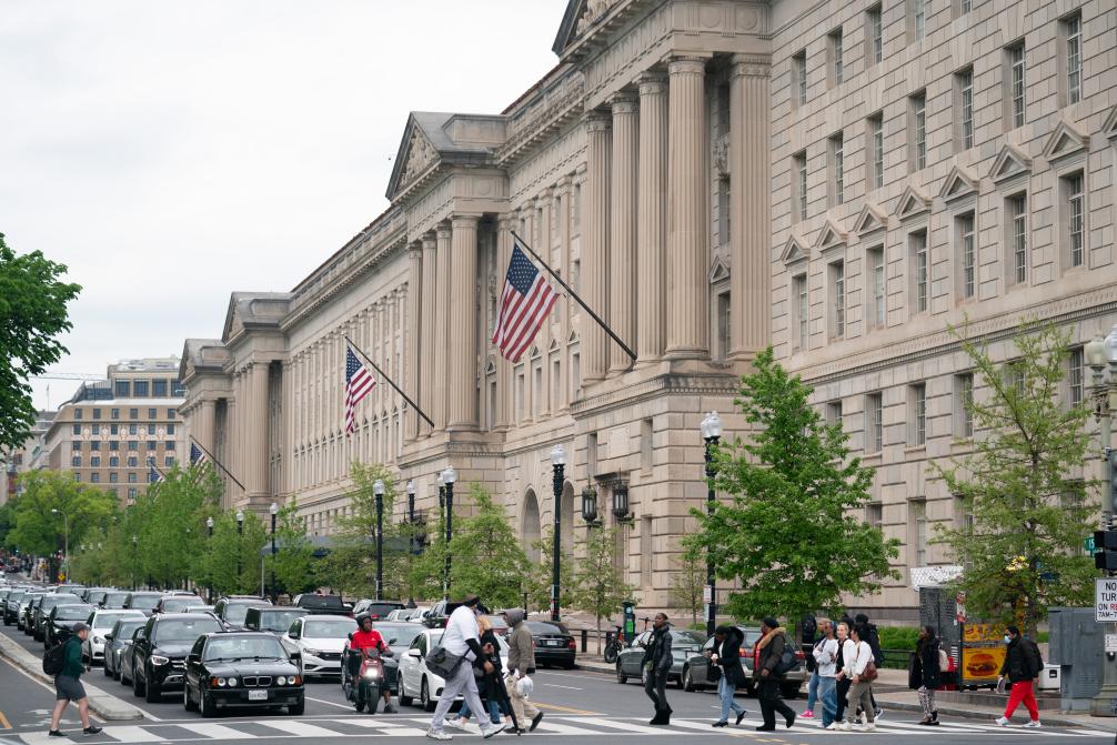 這是2024年4月25日在美國(guó)首都華盛頓拍攝的商務(wù)部大樓。新華社記者劉杰攝