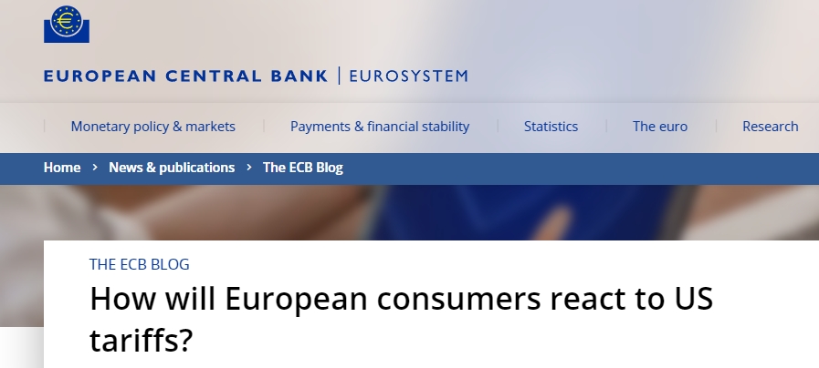 歐洲央行在4月底的博文中還提到,通常情況下,關(guān)稅對消費者的影響程度取決于受影響產(chǎn)品和服務(wù)的需求價格彈性,即如果價格上漲,消費者可能會轉(zhuǎn)向更便宜的替代品。然而,近期美國的關(guān)稅可能會導(dǎo)致更廣泛的偏好轉(zhuǎn)變,使歐洲人完全放棄美國產(chǎn)品和品牌,不論價格如何變化。