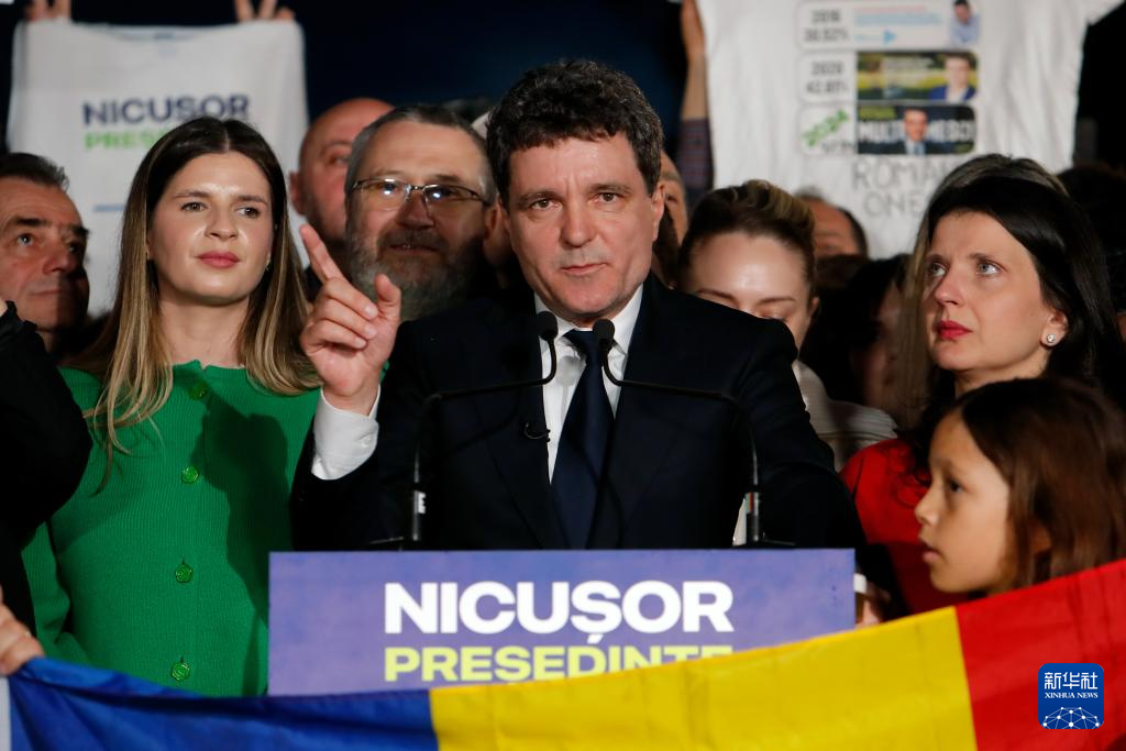 5月18日,在羅馬尼亞布加勒斯特,獨(dú)立候選人、布加勒斯特市長(zhǎng)尼庫(kù)紹爾·達(dá)恩在總統(tǒng)選舉第一次投票后發(fā)表講話(huà)。新華社發(fā)(克里斯泰爾攝)