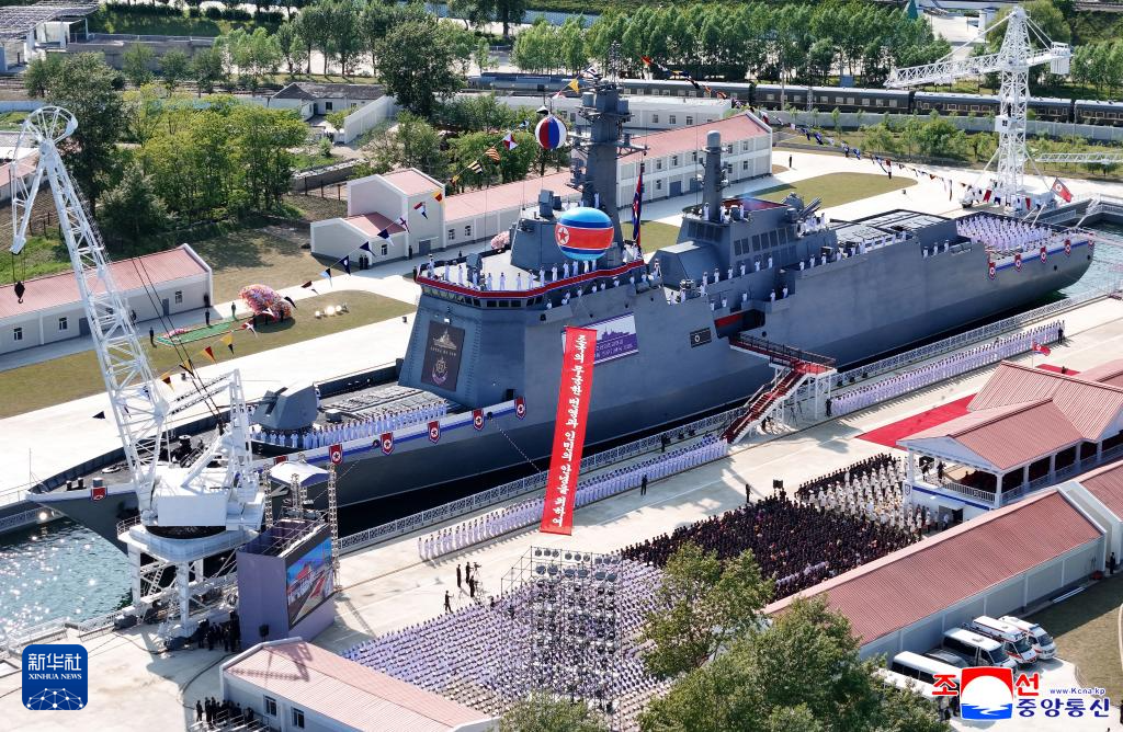 這是朝中社發(fā)布的朝鮮“崔賢”級二號艦下水儀式現(xiàn)場畫面。新華社/朝中社