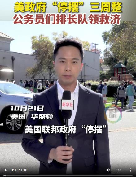21日,美國聯(lián)邦政府“停擺”已整整三周。當(dāng)天午間,新華社記者在首都華盛頓東郊一處救濟(jì)點看到,被拖欠工資的聯(lián)邦雇員排起了數(shù)十米長隊,領(lǐng)取免費(fèi)食品以解“燃眉之急”。