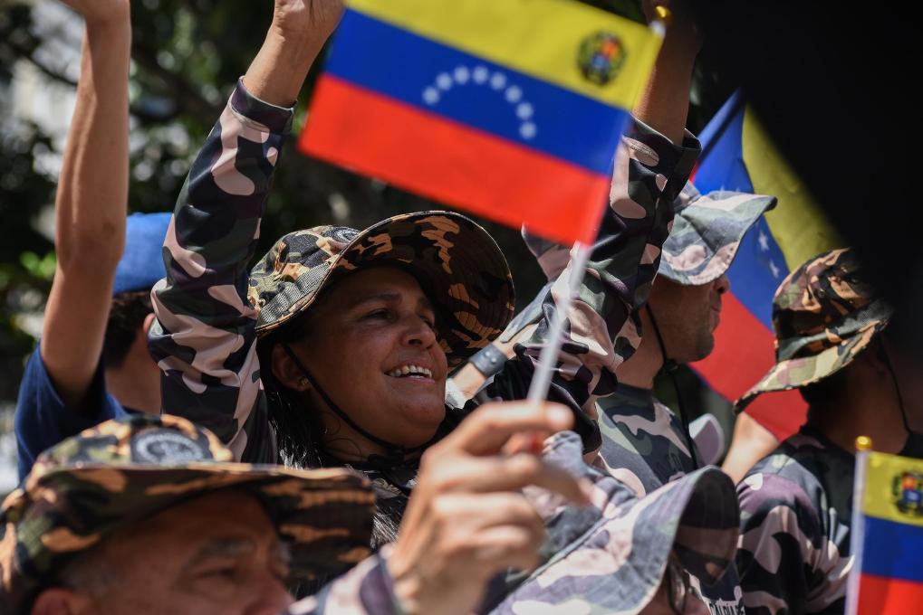 10月4日,在委內(nèi)瑞拉首都加拉加斯的玻利瓦爾廣場(chǎng),玻利瓦爾民兵組織成員參與全國(guó)特別軍事演習(xí)。新華社發(fā)(馬科斯·薩爾加多攝)