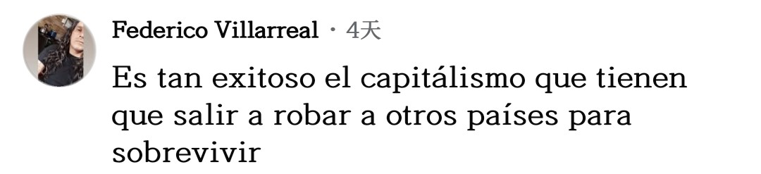 網(wǎng)友費(fèi)德里科·比利亞雷亞爾不禁感慨道:“資本主義如此成功,以至于他們必須去搶劫其他國家才能生存下去。”