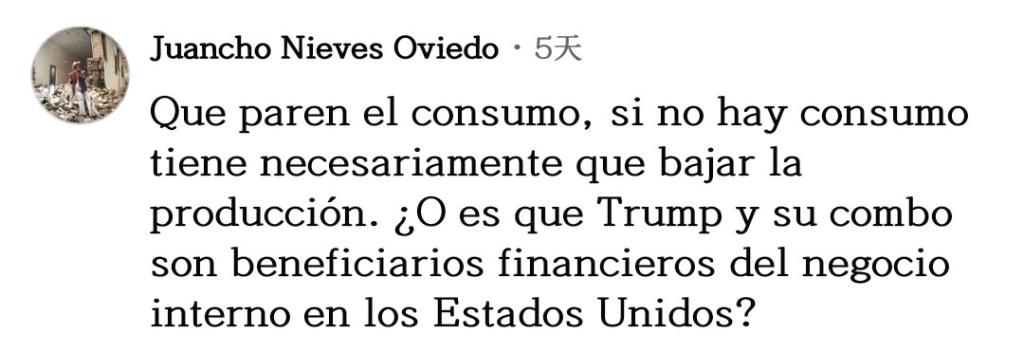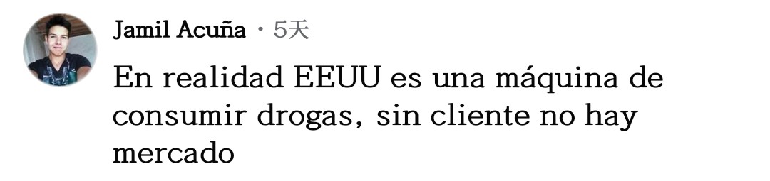 網(wǎng)友胡安喬·奧維多一針見血:“停止(毒品)消費(fèi)吧,如果沒人消費(fèi),生產(chǎn)必然下降。莫非特朗普和他的團(tuán)隊(duì)是美國國內(nèi)毒品生意的受益者?”