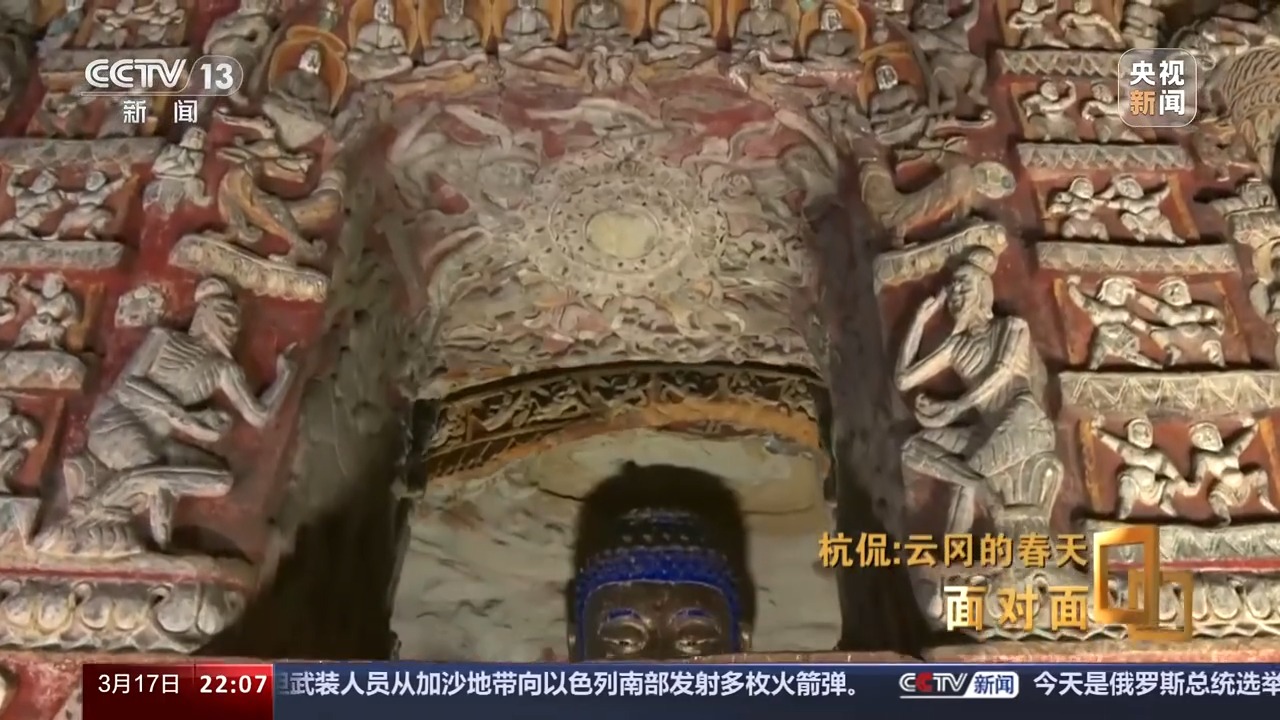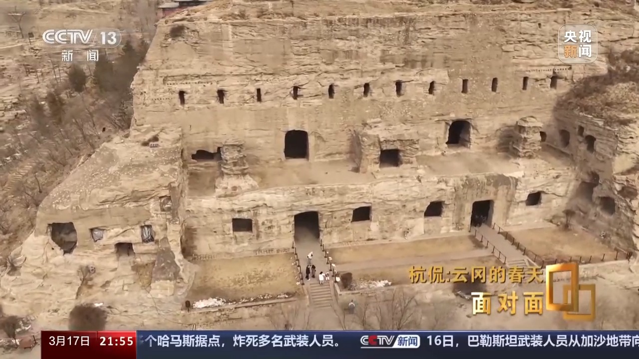 3月的山西大同,乍暖還寒,到訪云岡石窟的游客依舊熱情不減。跟隨云岡研究院院長杭侃,我們一起回望這段跨越1500多年的歷史。云岡石窟的開鑿始于北魏時期,它是佛教傳入中國后,第一次以皇家的力量主持開鑿的石窟群,有“真容巨壯”“窮諸巧麗”之譽。云岡石窟現(xiàn)存主要洞窟45個,附屬洞窟209個,大小造像5.9萬余尊,2001年被聯(lián)合國列入世界遺產(chǎn)名錄。第20窟露天大佛是云岡石窟的標志性景觀,然而,我們并沒有在這里過多停留,杭侃把我們帶到了他更感興趣的另一個地方。
