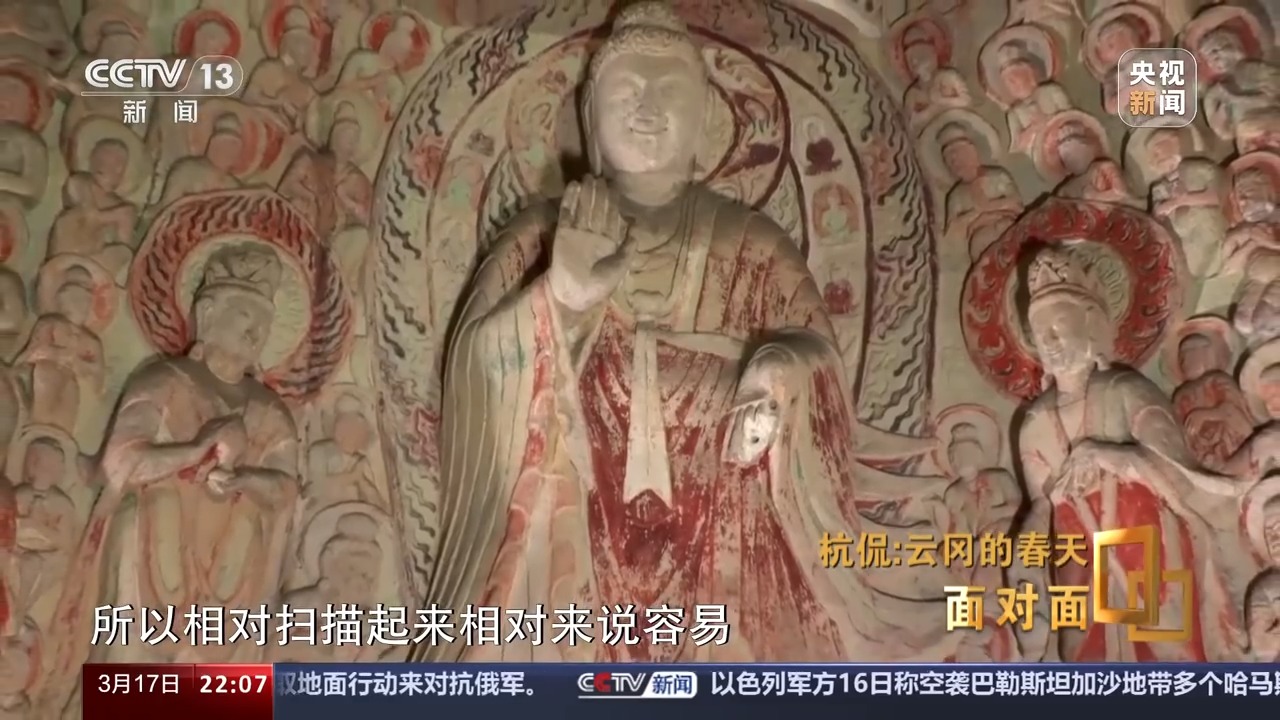 杭侃:因為敦煌起步早,到現(xiàn)在都是我們學習的榜樣。但是敦煌它正是因為起步早,可能我們現(xiàn)在技術迭代比較快。所以從技術迭代的角度來說我們并不落后。我們現(xiàn)在的精度已經(jīng)到了0.03毫米了,但是那樣需要的算力是非常大的。我們這有一個超算中心,超算中心是什么概念?就是你看到的一個洞窟的運算能力,要和一個中等城市的,我們叫智慧城市,那個量是一樣的。云岡它是一個皇家工程,所以那個像都特別大,敦煌它很多洞窟比較小,另外敦煌它的壁畫非常精彩,但是壁畫是二維的,所以相對掃描起來相對來說容易,但是我們這個地方它一個是大,第二個就是雕刻的手法多。所以像你看到的第六窟,我們到現(xiàn)在都沒有拿得出來,大家都能認可的采集方案。