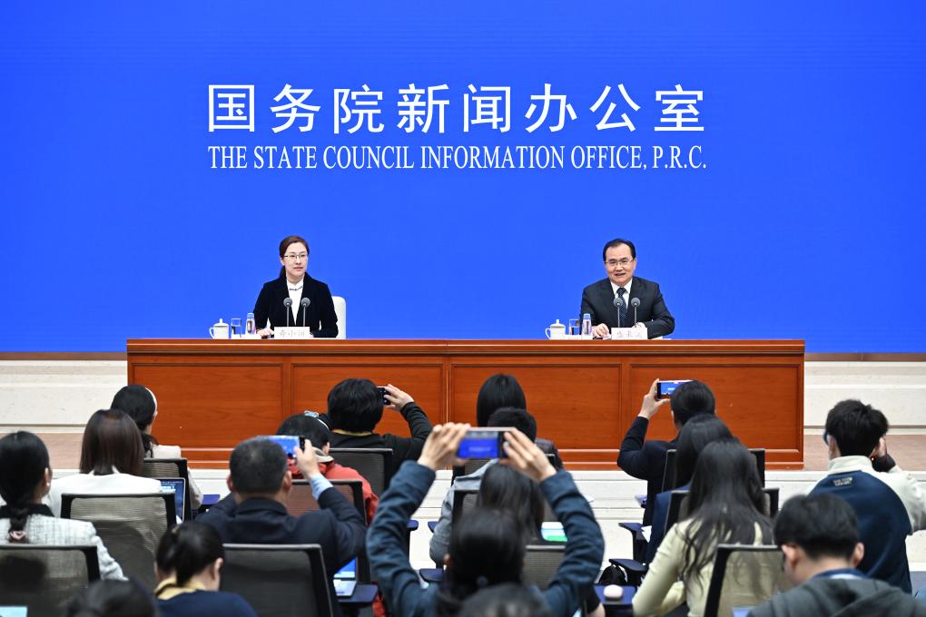 4月16日,國務院新聞辦公室在北京舉行新聞發(fā)布會,國家統(tǒng)計局副局長盛來運介紹2024年一季度國民經濟運行情況,并答記者問。新華社記者 李鑫 攝