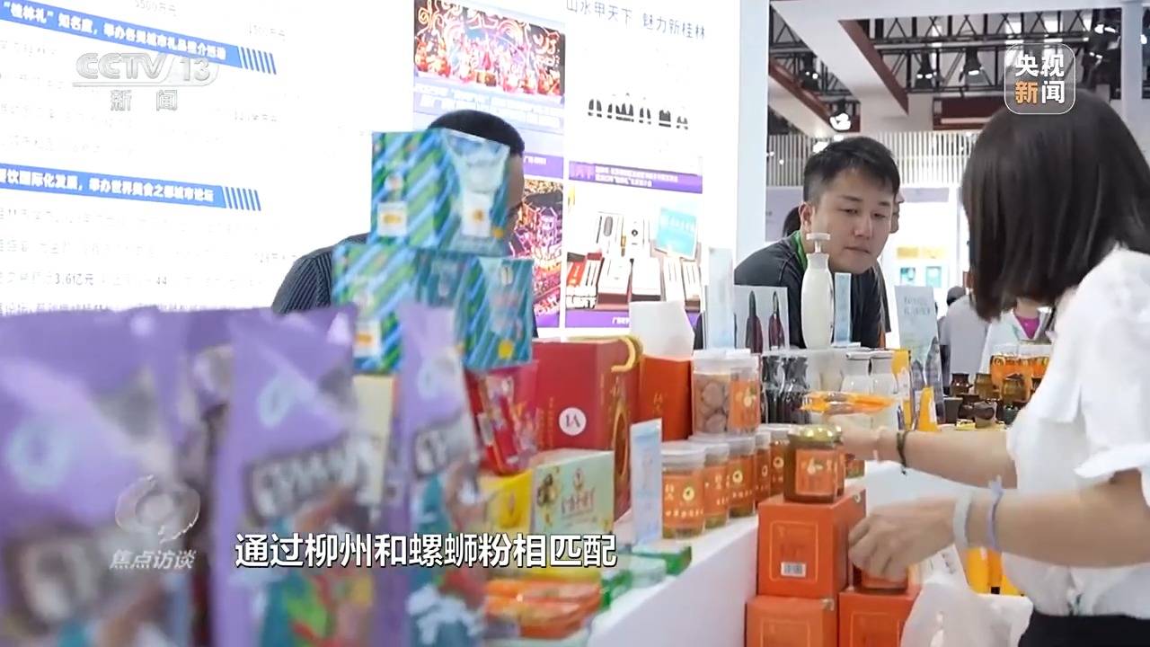 廣西壯族自治區(qū)商務(wù)廳工作人員 李春穎:往年我們都是桂茶、桂酒、桂藝,我們這一次想增加城市烙印,就選擇了六個(gè)區(qū)域消費(fèi)培育試點(diǎn)城市,讓城市跟物品相掛鉤。我們通過(guò)柳州和螺螄粉相匹配,桂林和桂林有名的文創(chuàng)相匹配。展會(huì)可能是一個(gè)星期、一個(gè)時(shí)間段,通過(guò)展會(huì)引導(dǎo)消費(fèi)者來(lái)到我們的城市,感受消費(fèi),全年消費(fèi)。