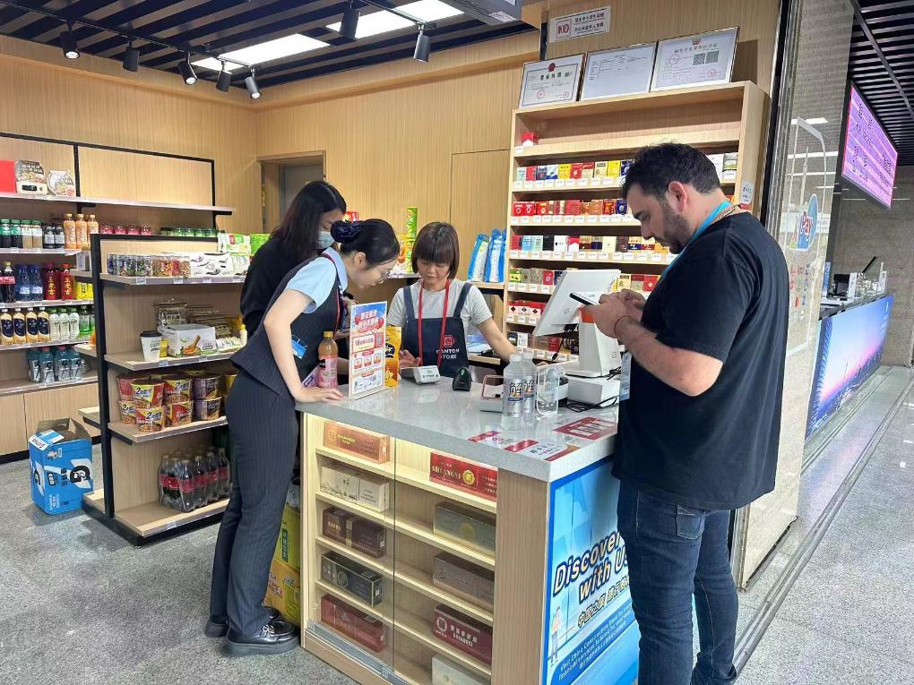 場館外,支付便利化措施早已全方位鋪開。從入境廣州開始,白云國際機(jī)場的醒目位置設(shè)有境外來賓支付服務(wù)咨詢臺(tái),多語種宣傳相關(guān)政策,現(xiàn)場指引入境人員開通電子支付?!拔覀円龑?dǎo)商鋪支持使用帶有Visa、Master、美國運(yùn)通等標(biāo)識(shí)的國際標(biāo)準(zhǔn)化信用卡,機(jī)場商鋪外卡POS機(jī)做到至少‘一鋪一臺(tái)’。”廣州市商務(wù)局相關(guān)負(fù)責(zé)人介紹。