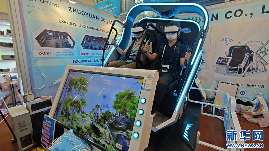 采購商體驗(yàn)VR娛樂設(shè)備。新華網(wǎng)伍嘉煒 攝