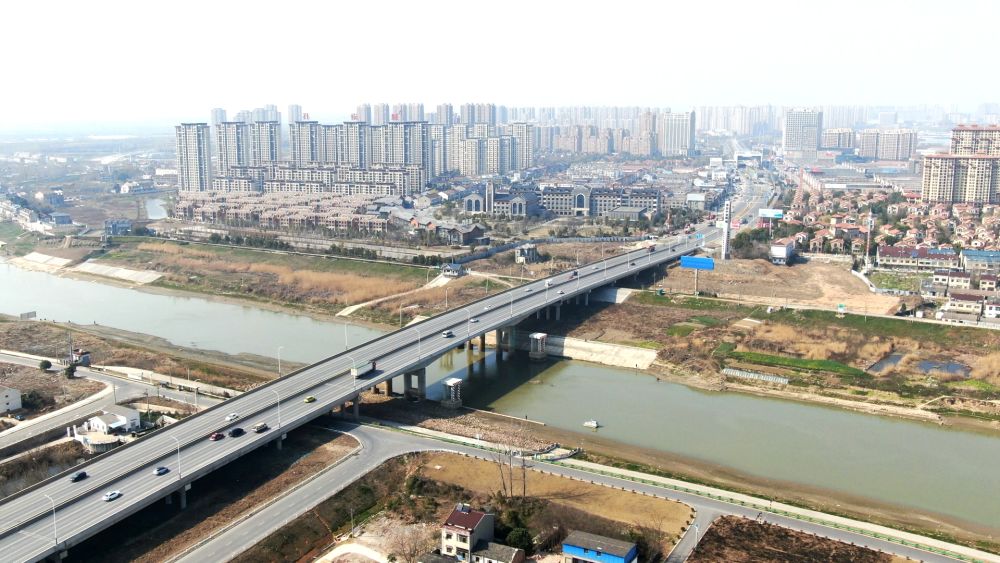 這是連接來安縣汊河鎮(zhèn)和南京市江北新區(qū)的汊河大橋(2023年3月2日攝,無人機照片)。新華社發(fā)(孫駿 攝)