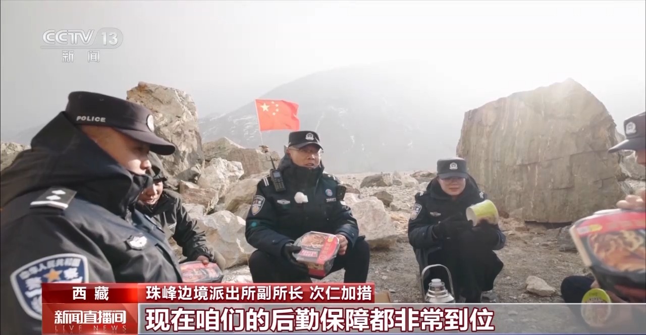 珠峰邊境派出所副所長 次仁加措:這里風是挺大的。但咱們有“法寶”,就是高原上的火鍋。現(xiàn)在后勤保障非常到位,在野外哪個地方,吃頓熱乎飯已經(jīng)不是難事了。