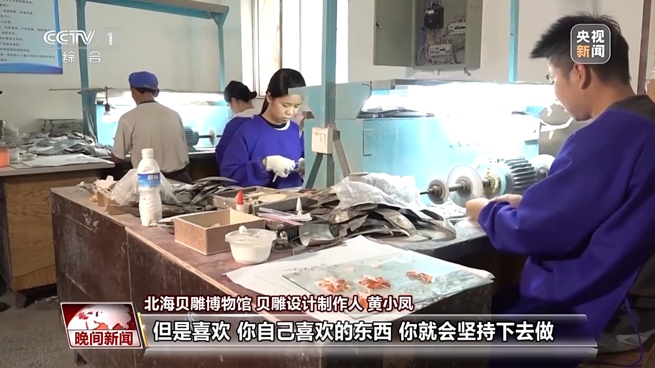 北海貝雕博物館貝雕設(shè)計(jì)制作人 黃小鳳:剛開(kāi)始的時(shí)候?qū)W的話也比較容易受傷,但是喜歡,你自己喜歡的東西,你就會(huì)堅(jiān)持下去做。