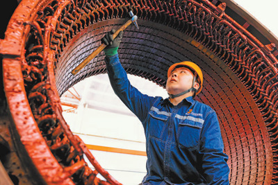 在包(頭)神(木)鐵路機務(wù)分公司東勝檢修設(shè)備車間,青年職工正對機車主發(fā)電機部件進(jìn)行質(zhì)量檢查。 張 棖 李尚昆攝影報道