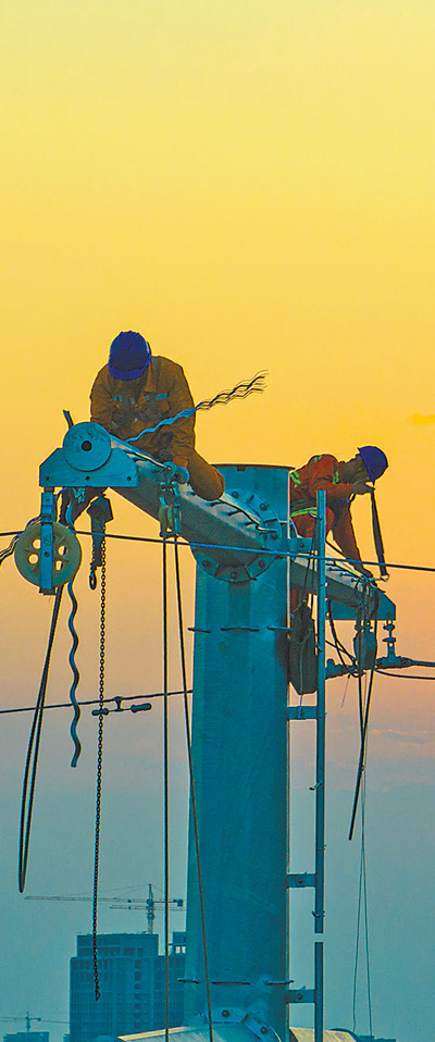 山東省聊城市電力部門工作人員正對線路進(jìn)行檢修。 謝 軍攝(人民視覺)