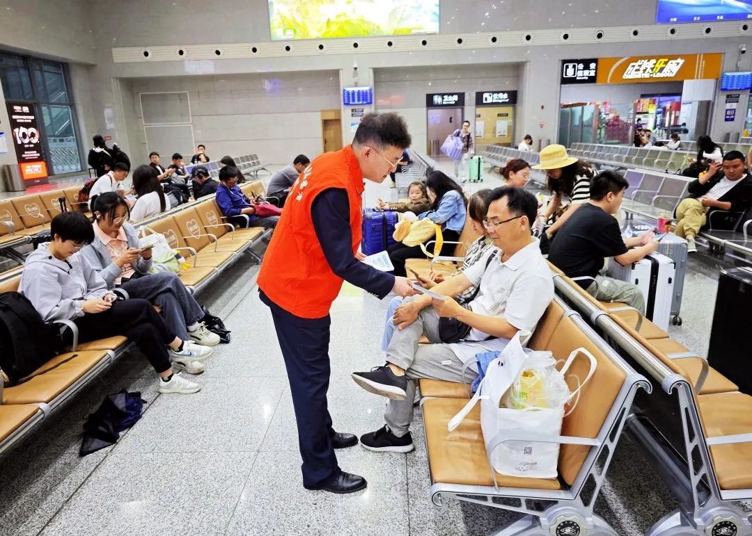 工作人員通過發(fā)放宣傳折頁、開展文明知識問答等方式,倡議并引導(dǎo)廣大旅客增強文明意識、提升文明素質(zhì)。活動共發(fā)放宣傳折頁1500冊、開展文明知識問答200人次,營造了文明有禮、和諧有序的站車環(huán)境。