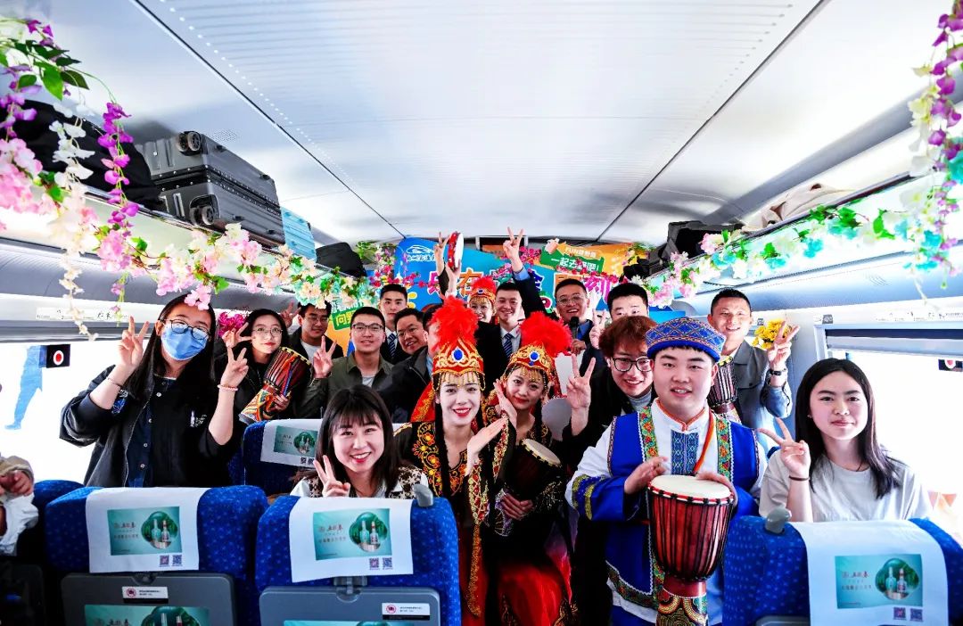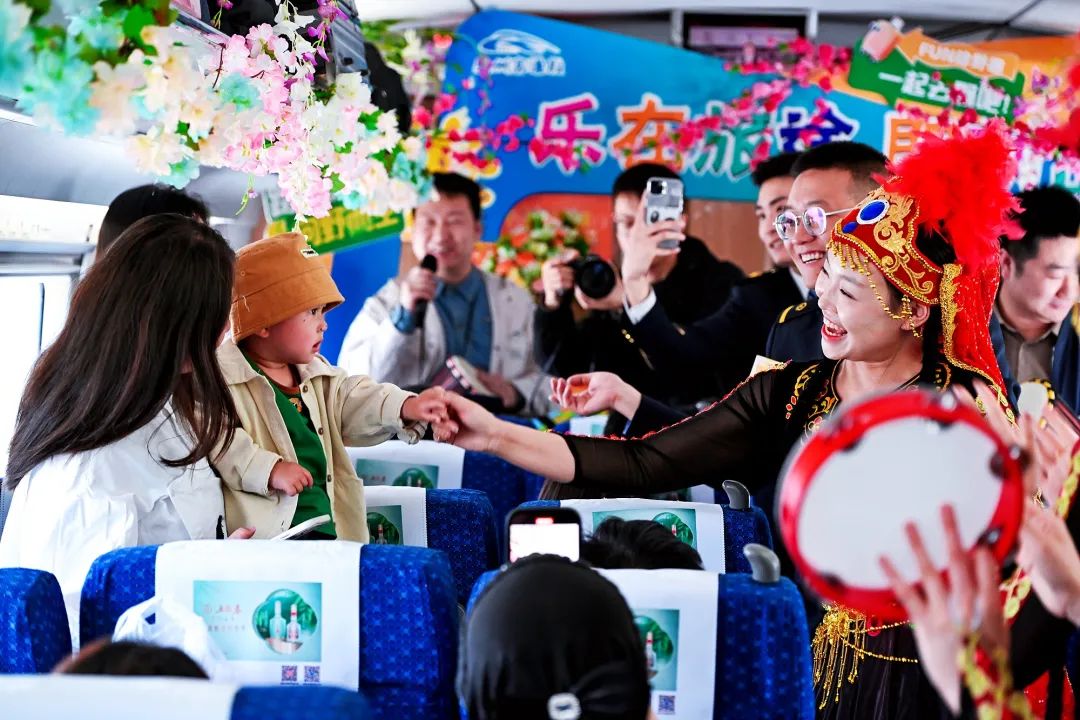 蘭州局集團公司在G1876次列車上舉辦“樂在旅途 即刻出發(fā)”主題秀,用錦簇花團裝飾列車,乘務(wù)員載歌載舞與旅客熱情互動,豐富旅客假期出行體驗。
