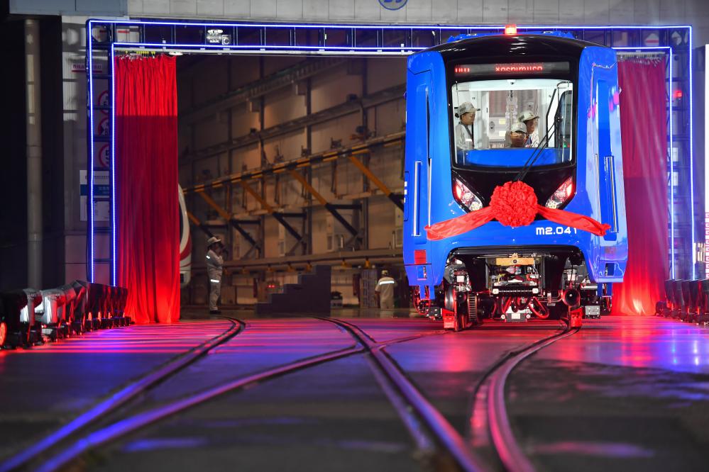 中車株機(jī)公司工作人員在中國中車出口墨西哥城輕軌列車首列車內(nèi)進(jìn)行巡檢(2023年9月9日攝)。新華社記者陳澤國攝