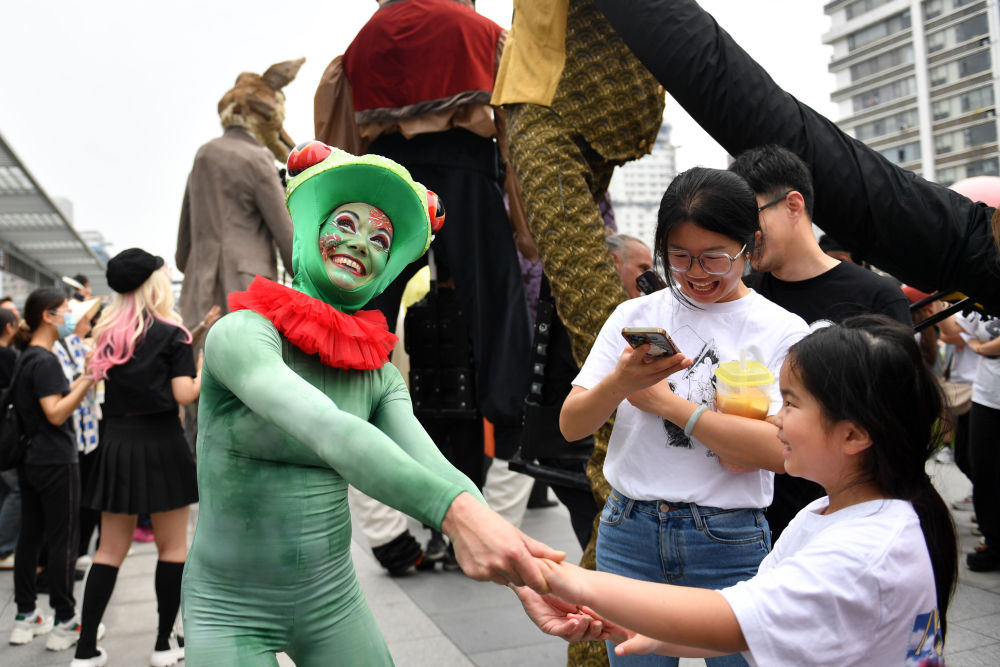 5月8日在長(zhǎng)沙的演出現(xiàn)場(chǎng),法國(guó)著名的阿奇博·卡拉曼特拉劇團(tuán)演員們通過巨型木偶、馬戲和空中舞蹈等形式進(jìn)行表演,營(yíng)造出了夢(mèng)幻、幽默詼諧和互動(dòng)感強(qiáng)的演出風(fēng)格,收獲了現(xiàn)場(chǎng)觀眾的陣陣掌聲。