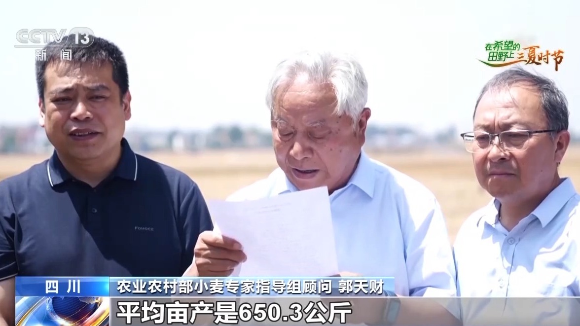 農業(yè)農村部小麥專家指導組顧問 郭天財:我們按照加權平均,平均畝產是650.3公斤,應該說創(chuàng)造了四川省百畝連片的最高紀錄。
