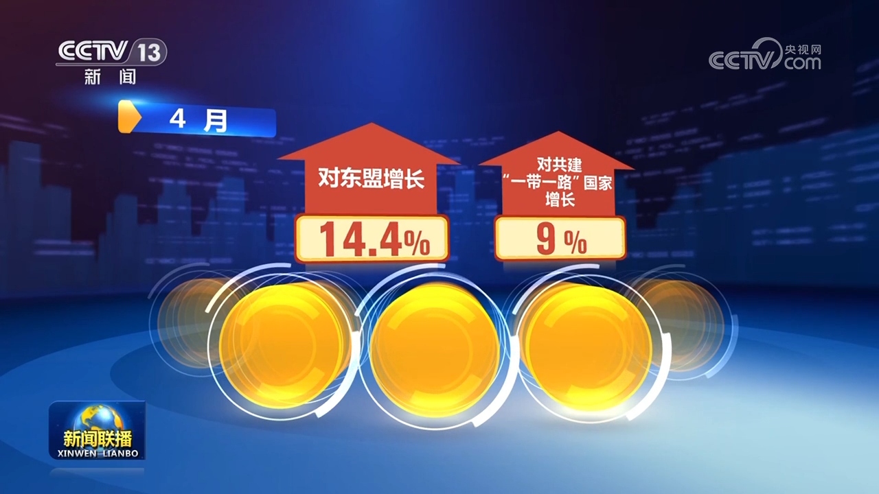 從市場(chǎng)看,我國(guó)對(duì)傳統(tǒng)和新興市場(chǎng)的貿(mào)易都呈現(xiàn)出增長(zhǎng)態(tài)勢(shì)。4月,受庫(kù)存消化、需求恢復(fù)等因素帶動(dòng),中國(guó)對(duì)傳統(tǒng)市場(chǎng)進(jìn)出口由降轉(zhuǎn)增,其中,對(duì)歐盟增長(zhǎng)3.3%,對(duì)美國(guó)增長(zhǎng)6.2%。與此同時(shí),對(duì)新興市場(chǎng)進(jìn)出口繼續(xù)保持較高增速,對(duì)東盟、共建“一帶一路”國(guó)家分別增長(zhǎng)14.4%、9%。