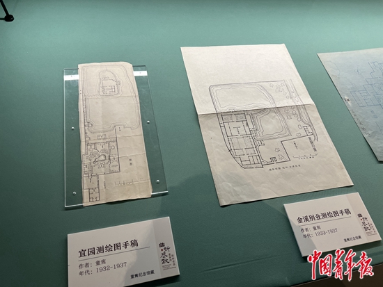 “曲折盡致——童寯?shù)膱@林世界”展覽上展出童寯測繪圖手稿。