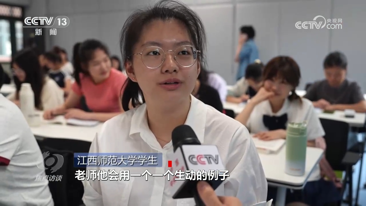 江西師范大學(xué)學(xué)生:“老師他會用一個生動的例子來表達他的觀點,然后也會用一些讓人感覺很熱血沸騰的,也有那種催人眼淚的故事,然后來激蕩我的心靈。”