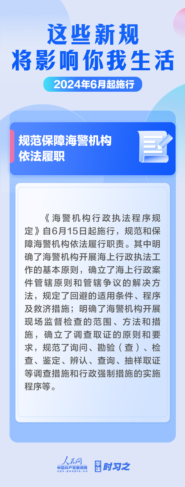 保障糧食有效供給;確立生態(tài)保護(hù)補(bǔ)償基本制度規(guī)則;規(guī)范保障海警機(jī)構(gòu)依法履職……6月起,這些新規(guī)施行,將影響你我生活。