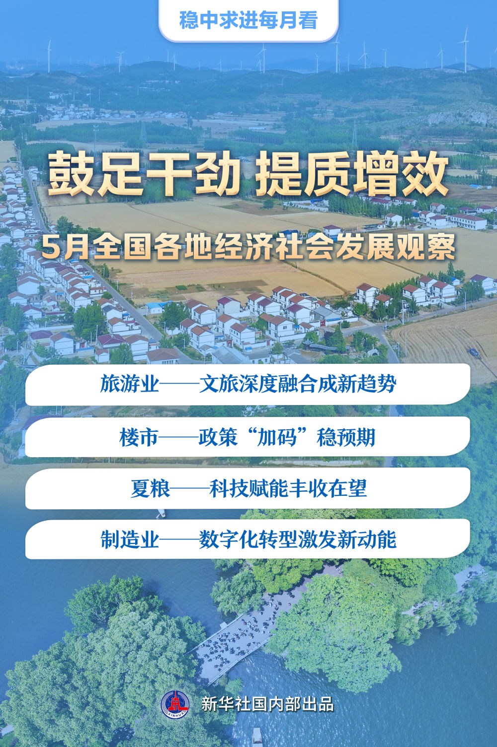 春歸夏至,萬物生長(zhǎng)。文旅融合向“深”挺進(jìn),樓市政策優(yōu)化調(diào)整,夏收以科技賦能,制造業(yè)數(shù)字化轉(zhuǎn)型提速……提質(zhì)增效成為5月全國(guó)各地經(jīng)濟(jì)社會(huì)發(fā)展的突出特點(diǎn)。