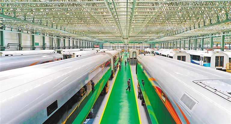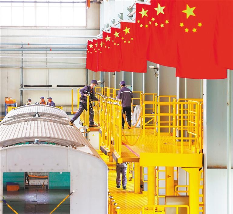 ▲5月28日,中車長客國鐵事業(yè)部制造中心裝配產(chǎn)線組,員工在忙生產(chǎn)。