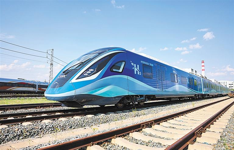 ▲5月28日,中車長客研制的全國首列氫能源市域列車。該車已于近期成功完成達(dá)速試跑,標(biāo)志著氫能在軌道交通領(lǐng)域的應(yīng)用取得歷史性突破。