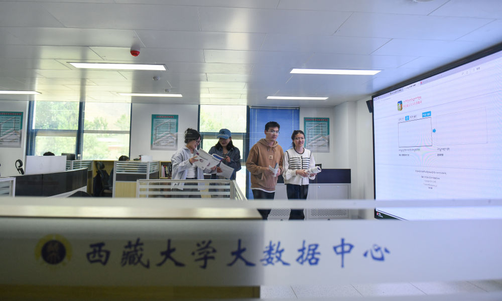 5月30日,尼瑪扎西的學(xué)生在西藏大學(xué)大數(shù)據(jù)中心結(jié)束翻譯軟件測(cè)試。新華社記者 晉美多吉 攝