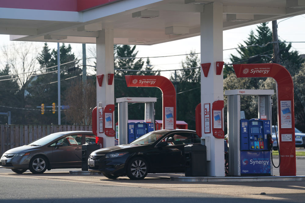 3月12日,車輛停在美國弗吉尼亞州維也納的一座加油站內(nèi)。新華社記者劉杰攝