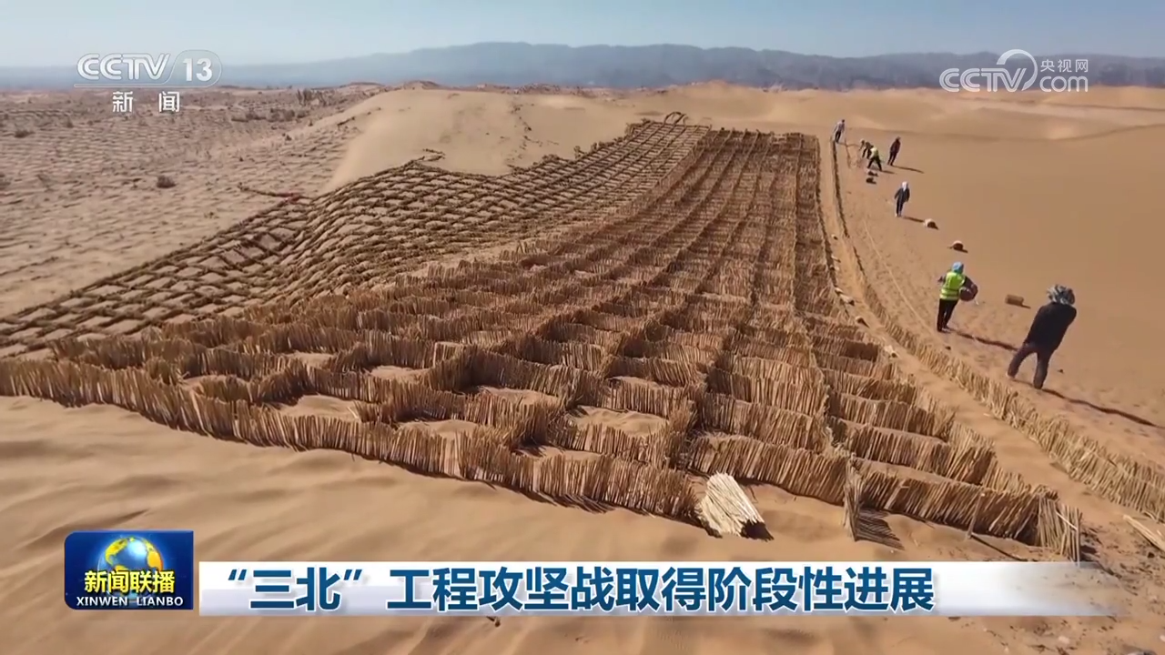 這幾天,趕在雨季到來前,“三北”工程攻堅戰(zhàn)項目區(qū)各地因地制宜,植樹種草,防沙治沙。地處騰格里沙漠東南緣的寧夏中衛(wèi),今年將完成荒漠化治理59.23萬畝,當?shù)卣谝悦刻?00到1000畝的速度栽扎沙障,漫漫黃沙被分割鎖定在了數(shù)以萬計的方格中。