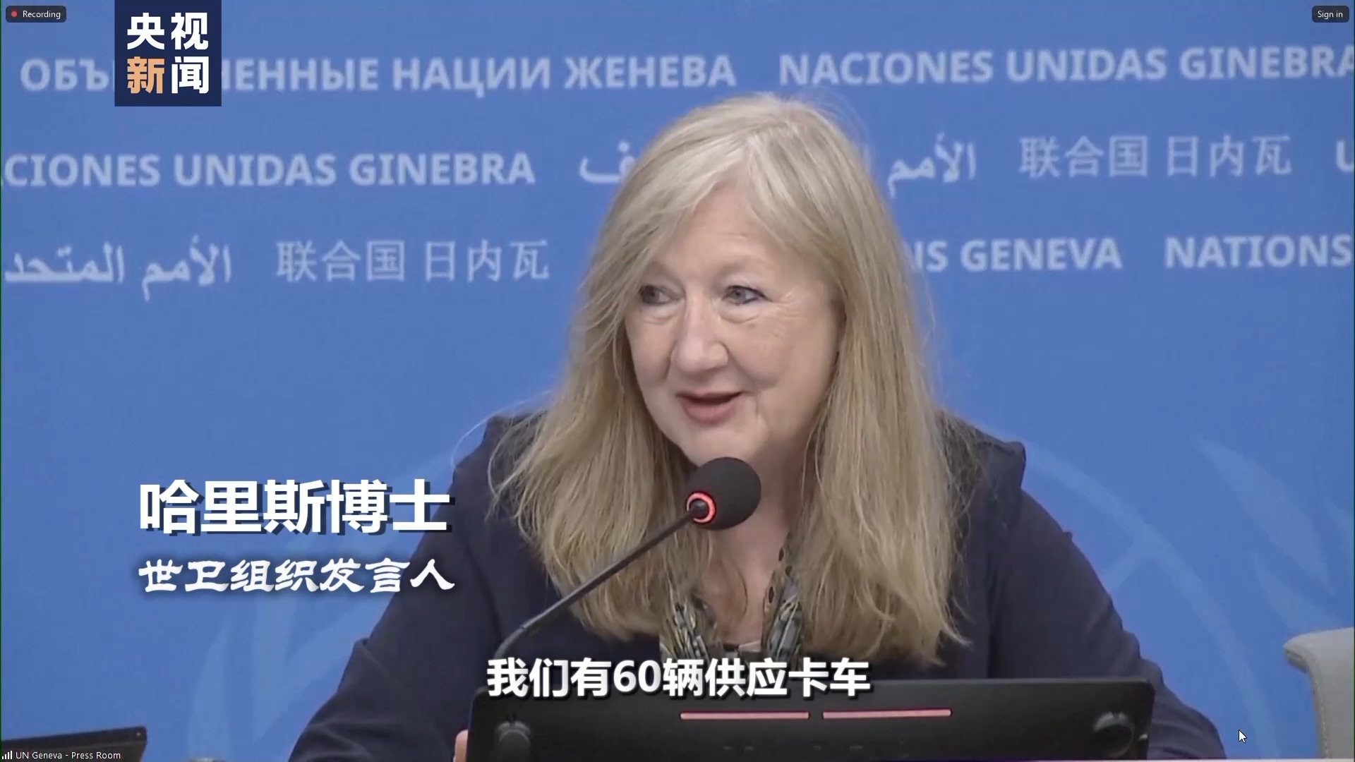 世衛(wèi)組織發(fā)言人 哈里斯博士:由于邊境關(guān)閉,我們有60輛供應卡車在阿里什等候,無法進入拉法。