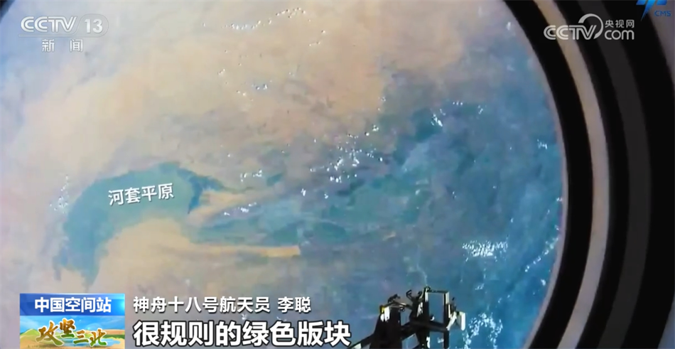看完黃河沿線各省市區(qū)隨著“三北”工程建設(shè)而發(fā)生的變化,不知道您是否好奇,如果我們再把視角拉高,在太空俯瞰“三北”大地,又是怎樣的一幅景象呢?在距離地球約400公里的上空,神舟十八號航天員乘組的三名航天員正在中國空間站執(zhí)行任務,他們也拍攝下了一些“三北”地區(qū)的畫面,我們一起去看看。