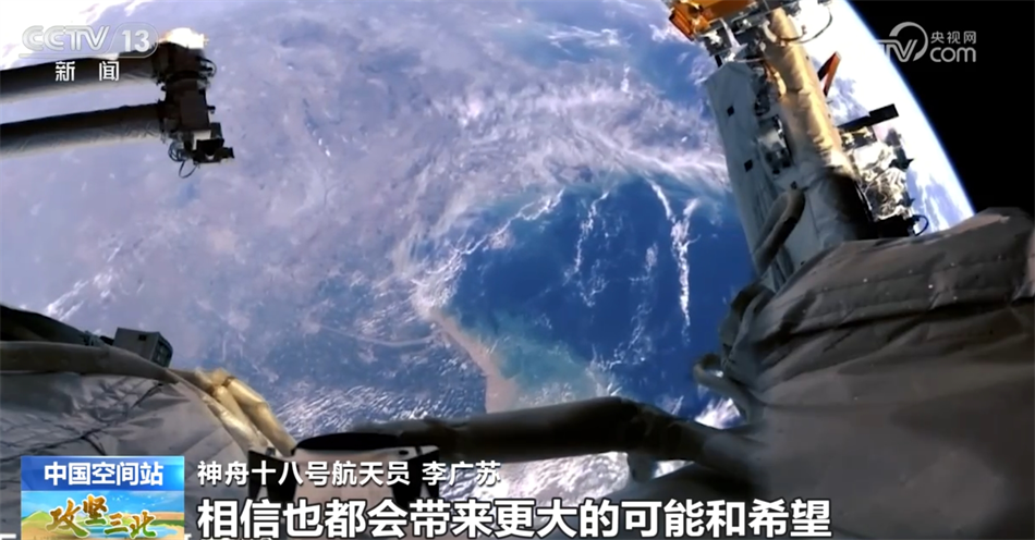 神舟十八號航天員李廣蘇介紹:“我們的航天工作是探索宇宙,同“三北”工程一樣,都是為天地立心,都需要鍥而不舍、久久為功,既要充滿激情,又要充滿科學精神??梢哉f,“三北”地區(qū)每多一點綠,在浩瀚太空每多探索一步,都充滿艱辛和挑戰(zhàn),而每一分付出和堅守,相信也都會帶來更大的可能和希望?!?/p>