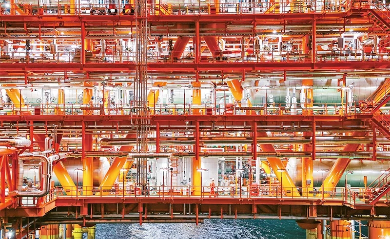近年來,我國堅持創(chuàng)新引領,加快發(fā)展新質(zhì)生產(chǎn)力,重大工程科技含量持續(xù)攀升。2023年11月14日,中國海油宣布我國渤海首個千億方大氣田——渤中19—6氣田Ⅰ期開發(fā)項目成功投產(chǎn),標志著我國海上深層復雜潛山油氣藏開發(fā)邁入新階段。圖為工作人員在渤中19—6氣田作業(yè)。 新華社發(fā) 杜鵬輝/攝