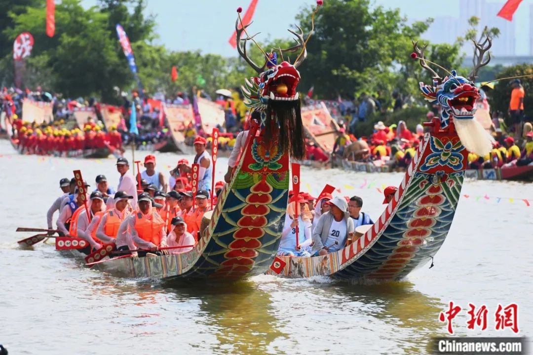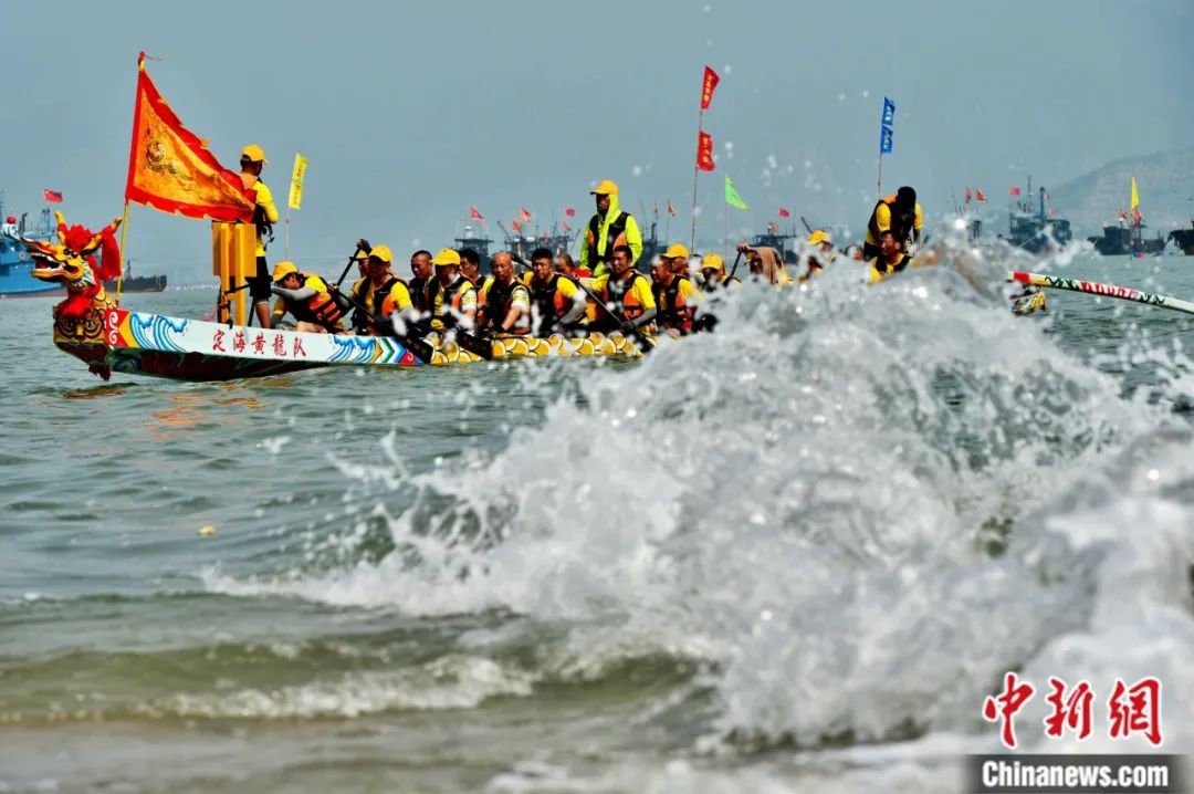 海上競(jìng)渡的龍舟,比普通龍舟更短些