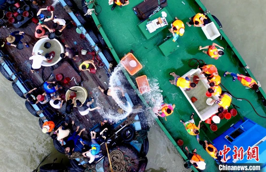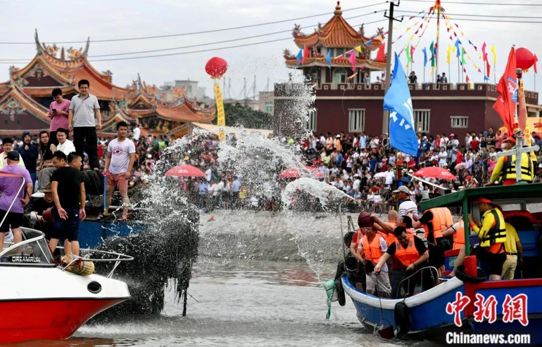石獅蚶江海上潑水民俗。中新社記者 王東明 攝