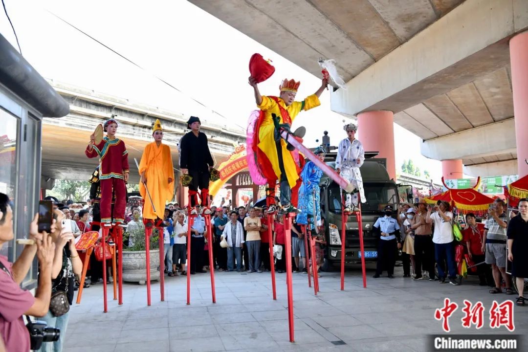 莆田民間民俗表演助興“爬龍船”。中新社記者 王東明 攝