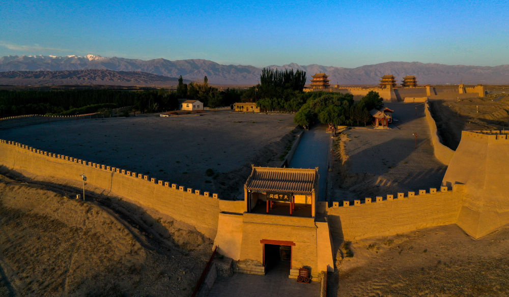 位于甘肅省嘉峪關市的嘉峪關關城(2023年7月14日攝,無人機照片)。新華社記者 方欣 攝