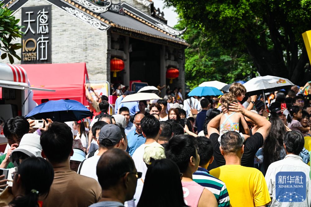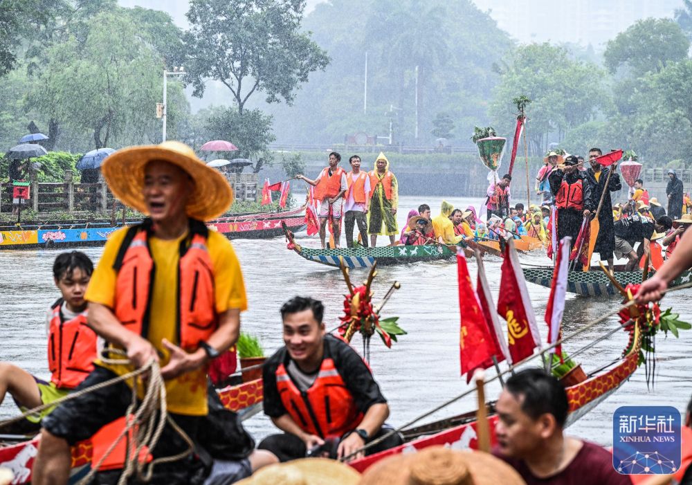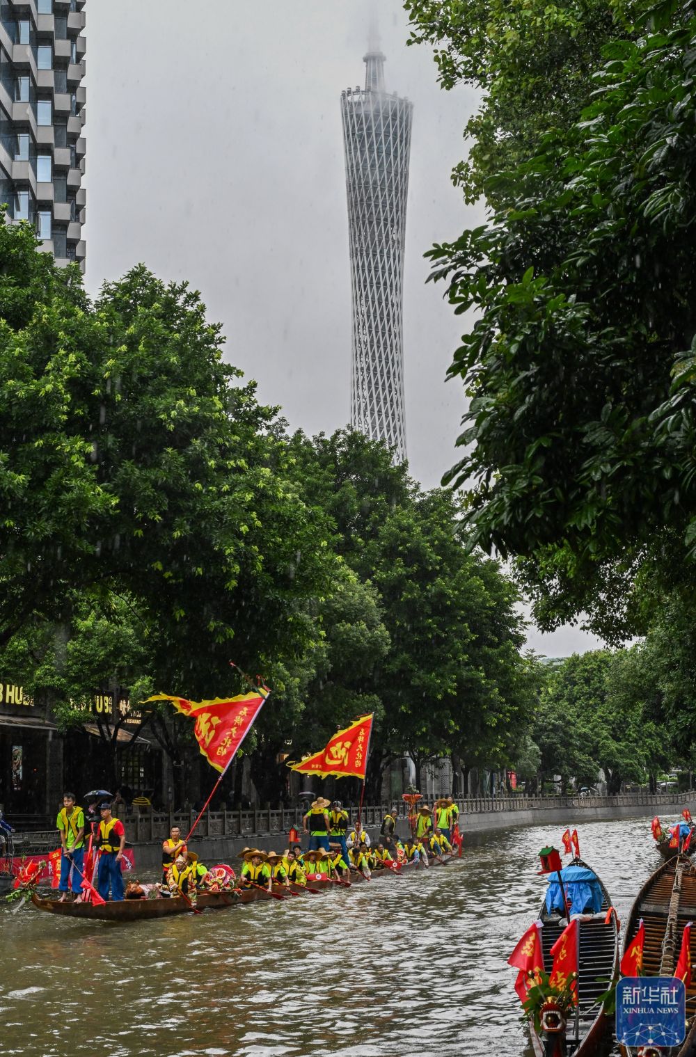 6月10日,國內(nèi)外游客匯聚在獵德觀賞“龍船景”?!褒埓啊笔菑V府地區(qū)水鄉(xiāng)在端午期間舉辦的一種民俗活動。