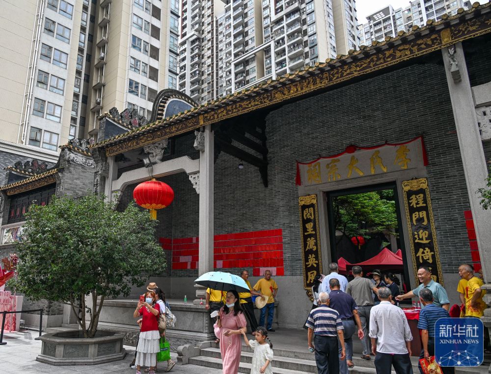 獵德村是位于廣州珠江新城CBD中心的一座歷史悠久的古村。每年端午期間,獵德村民都會遵照嶺南龍舟文化習俗,在祠堂和河涌,用各種充滿儀式感的“龍船景”展示對端午文化的傳承。