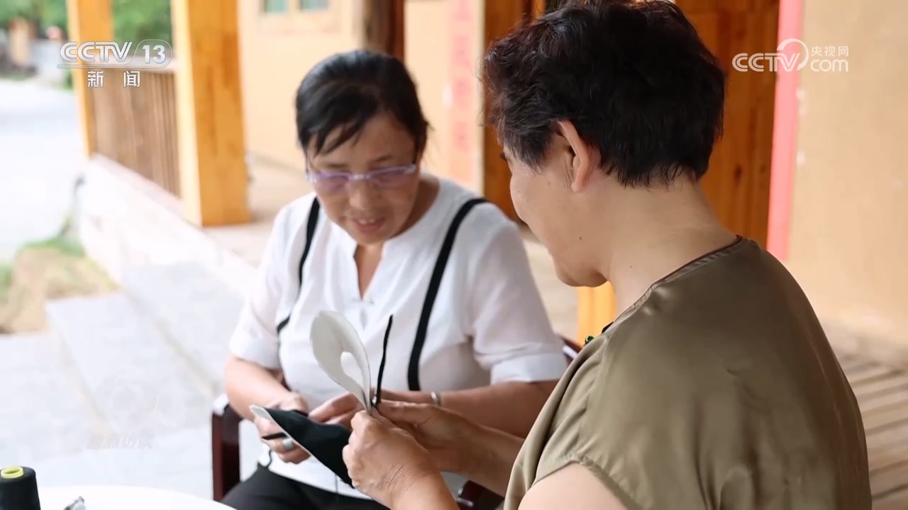 吳成榮是河南省第五批省級非物質(zhì)文化遺產(chǎn)新縣刺繡的傳承人,田鋪大塆年輕人多、客流量大,她希望優(yōu)美的豫南刺繡能在這里發(fā)揚光大。