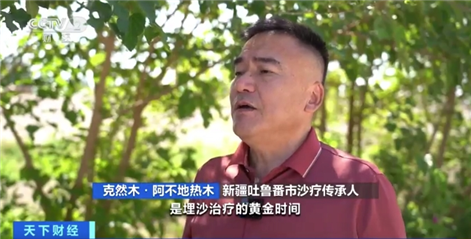 新疆吐魯番市沙療傳承人 克然木·阿不地?zé)崮荆?/strong>每年6月份至9月份是埋沙治療的黃金時(shí)間,去年我們共接待游客10萬人次,今年有望進(jìn)一步突破。